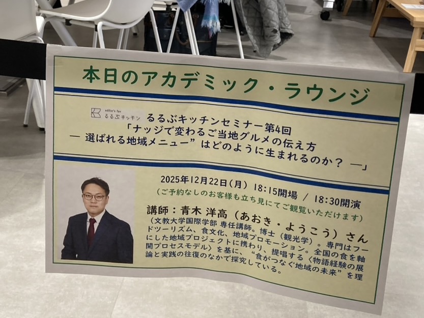 青木洋高ゼミナールではフードツーリズム、地域プロモーション、地域活性化などを研究しています