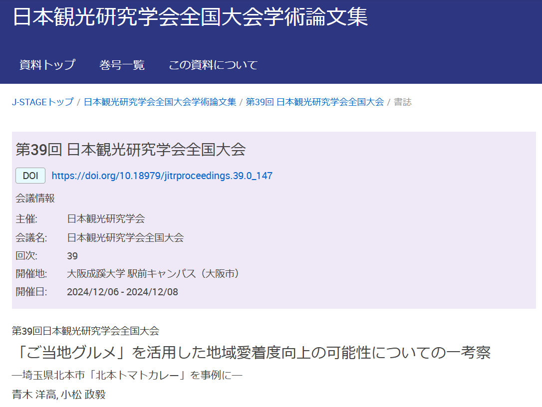 【論文】「ご当地グルメ」を活用した地域愛着度向上の可能性についての一考察 : 埼玉県北本市「北本トマトカレー」を事例に
